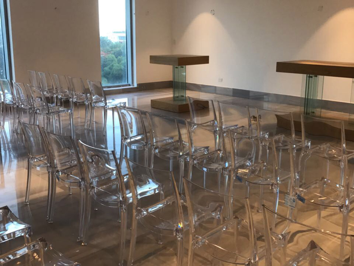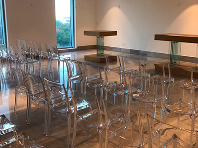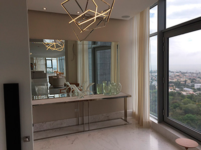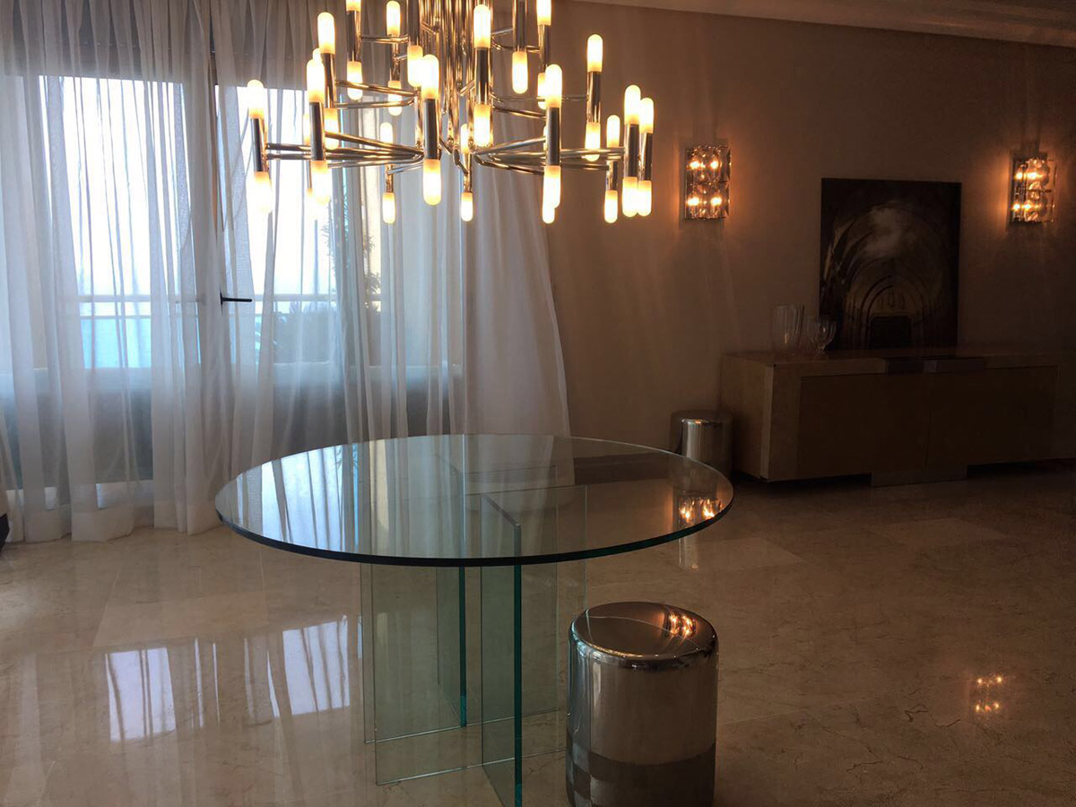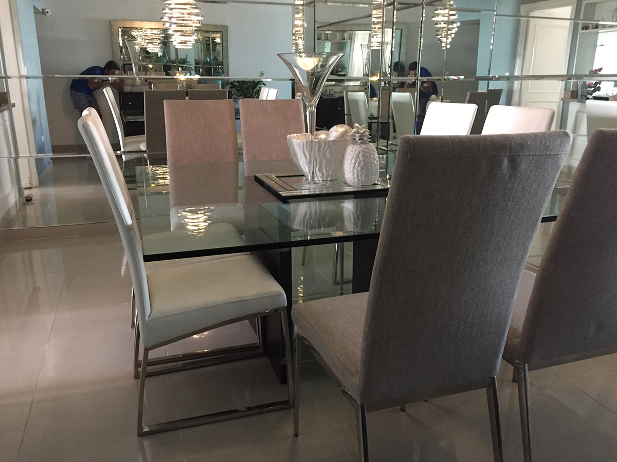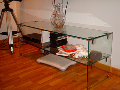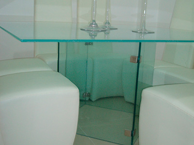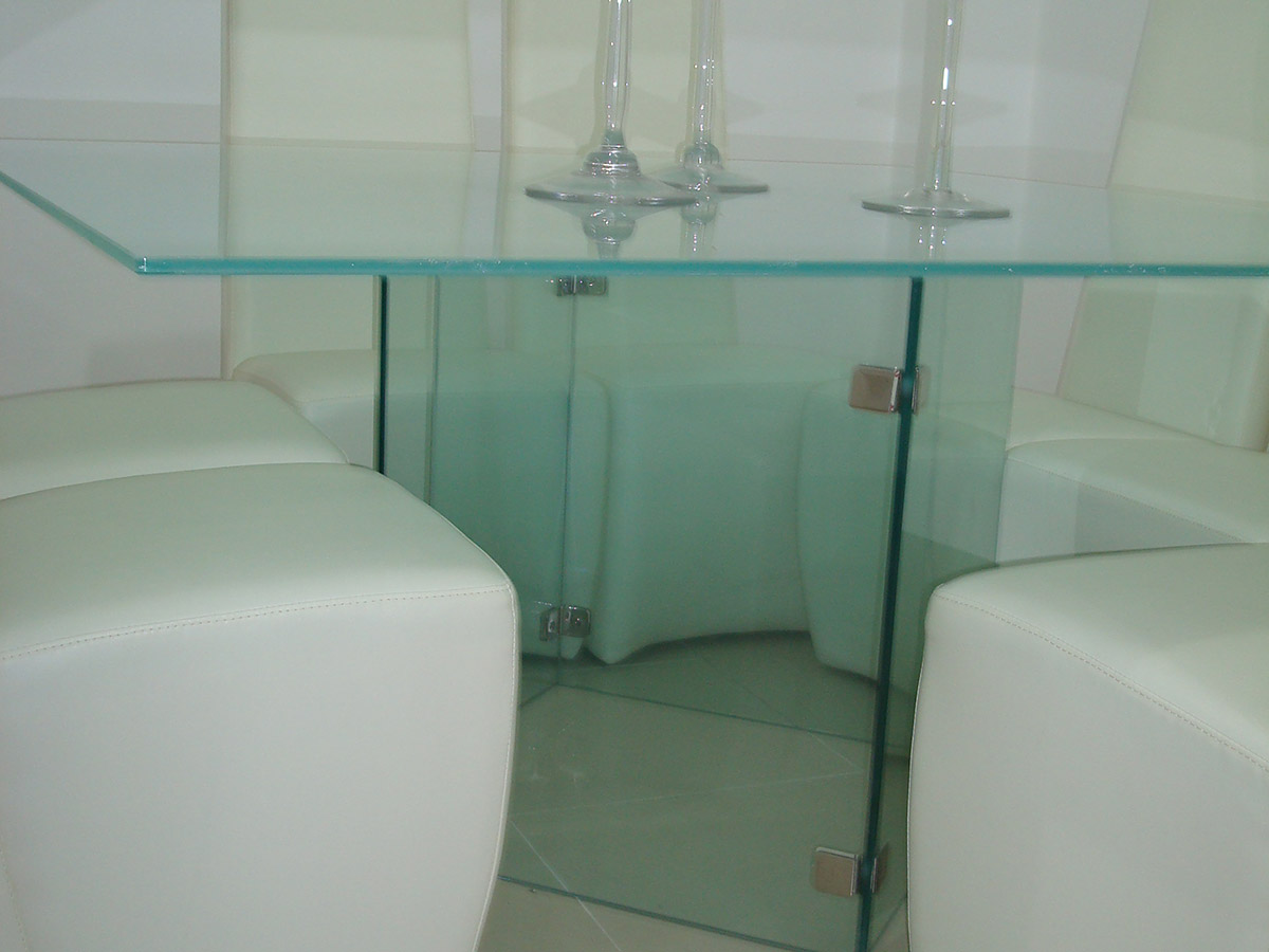 Mesas en acero inoxidable y vidrio
